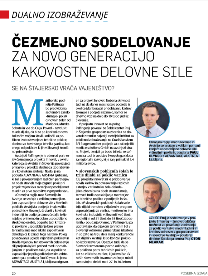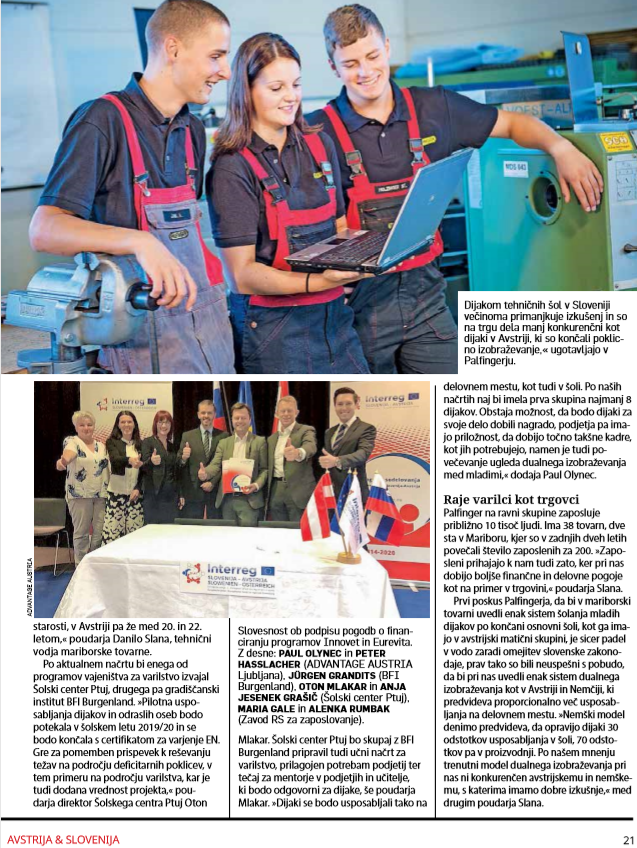 Novice in prireditve Novice 05.04.2019 www.si-at.eu10.01.2019 www.vecer.com 10.01.2019 www.times.si10.01.2019 www.vestnik.si10.01.2019 www.novice.nadji.si 10.01.2019 www.advantageaustria.org10.01.2019 www.krog.sta.siPrihajajoči dogodkiZaključna konferenca „KAKO BOM DOBIL PRAVI KADER V PRIHODNOSTI? – Sedanjost in prihodnost dualnega izobraževanja“,25.03.2021, 10:00 – 13:00Pretekli dokodki26.09.2018 www.pressclipping.si